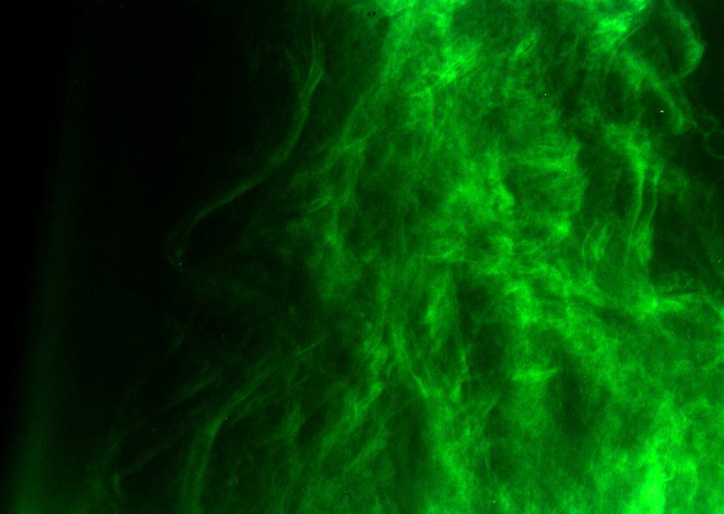 with green eyes glowing.