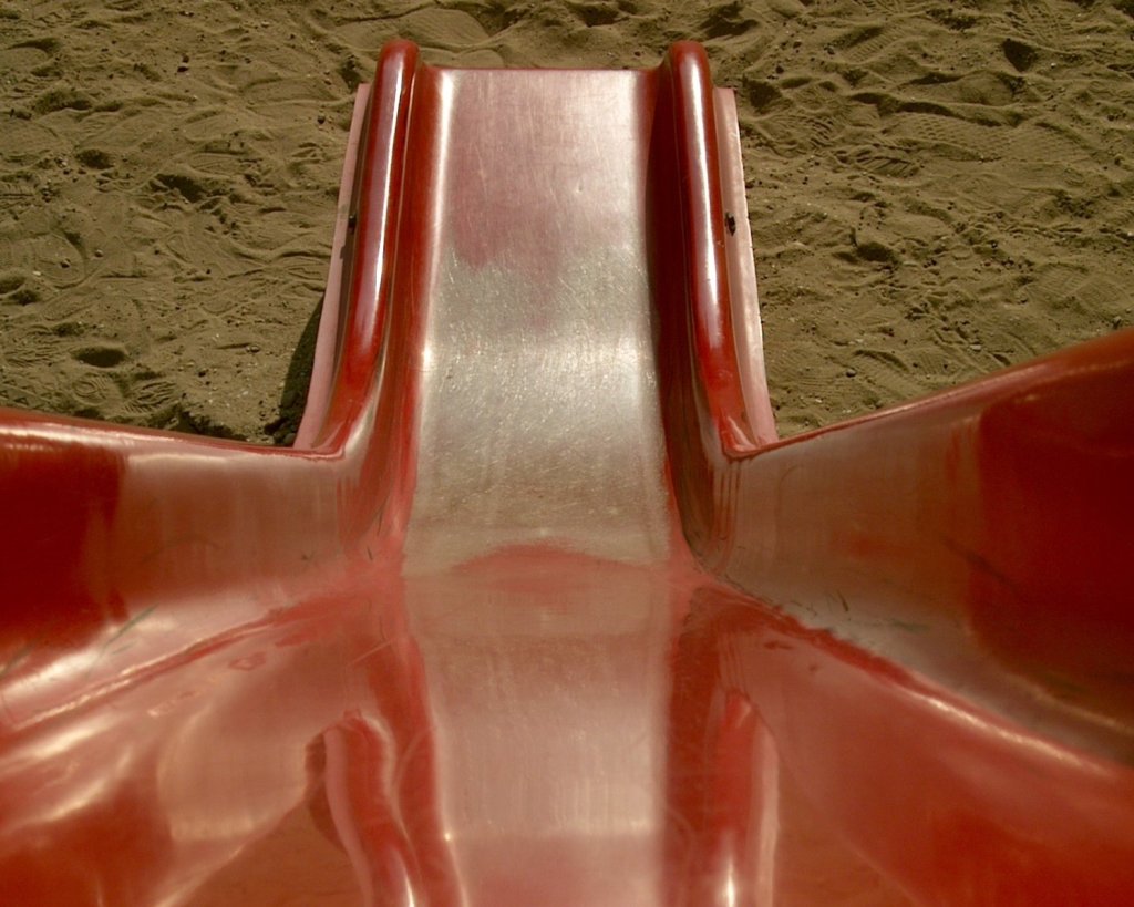 I’ve climbed the red plastic summit slide, crowded high, and I’m realising now I’ve never known how low was low